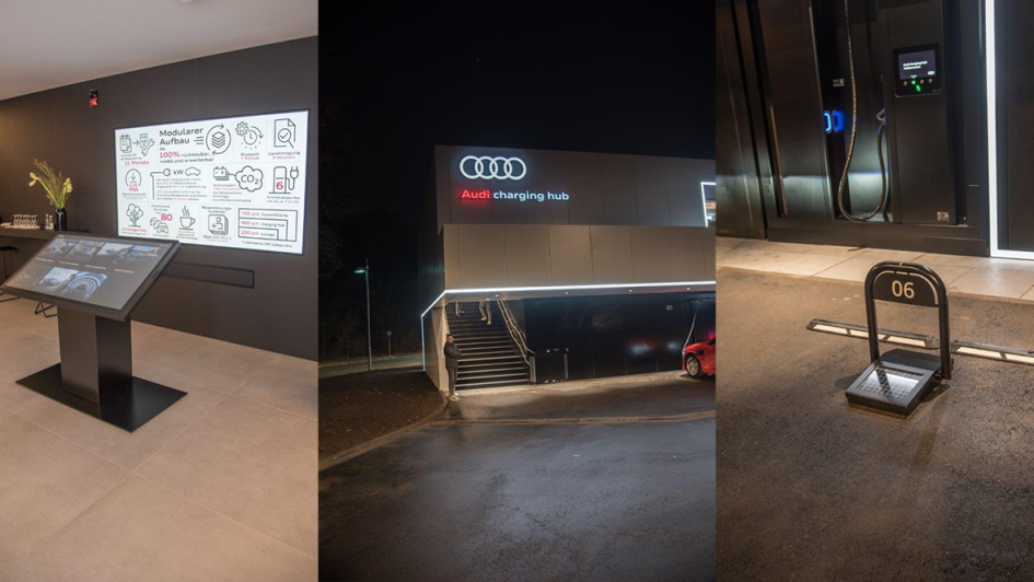 von 9: Mit dem Pilotprojekt – das vorerst auf drei Monate angesetzt ist – will Audi zeigen, wie innerstädtisches Schnellladen (HPC = High Performance Charger) funktionieren kann.