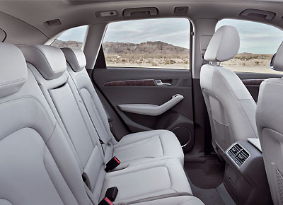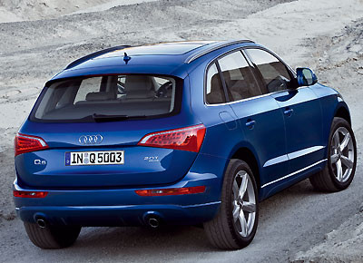von 7: Im Heck fallen die spitz-zulaufenden Rückleuchten auf. Die seitlich umgreifende Gepäckraumklappe zeigt die Verwandschaft zum großen Bruder Q7.