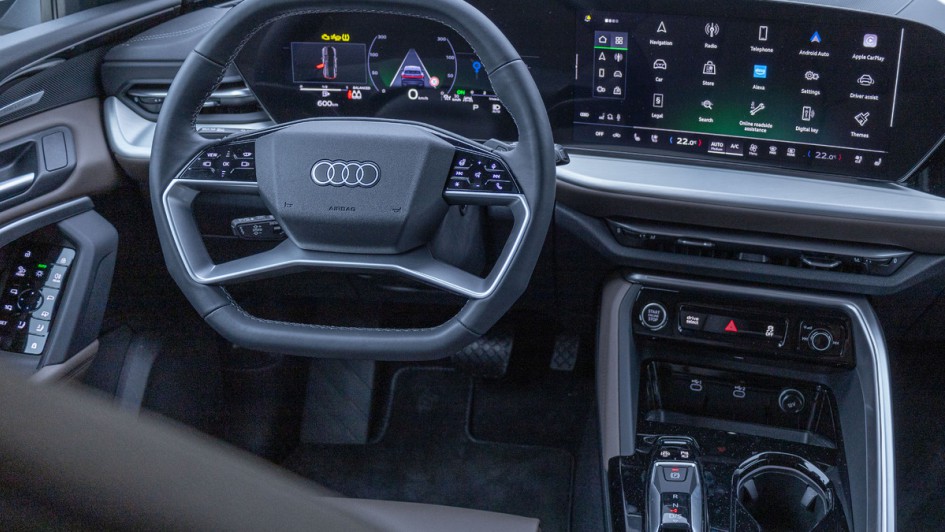 von 10: Das neu gestaltete Cockpit kennt man vom Audi A5 (2024). Die kapazitiven Touchfelder in der Türverkleidung links und im Lenkrad entsprechen weder den Qualitäts- noch den Bedienansprüchen, die Audi an sich selbst stellen sollte. Die Tasten sind unter anderem für die Lichtfunktionen, Spiegelverstellung, Sitzmemory und dem Ver- und Entriegeln der Türen zuständig und völlig deplatziert.