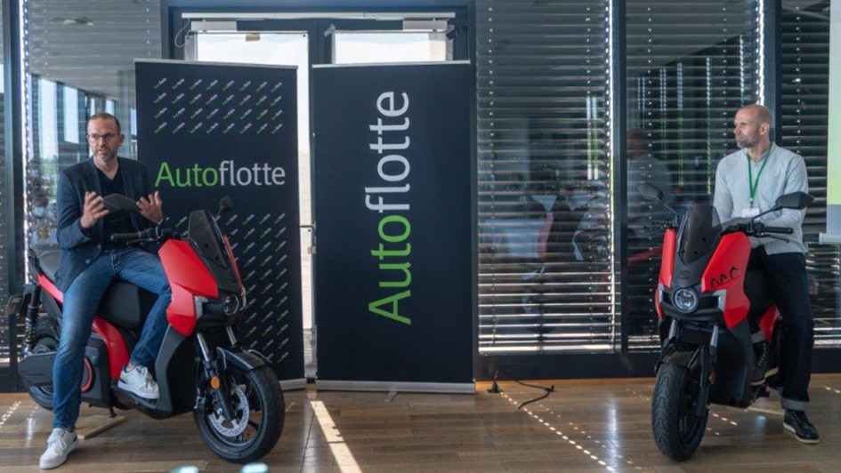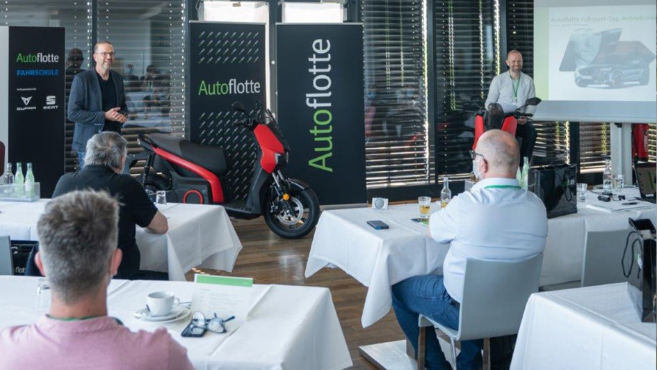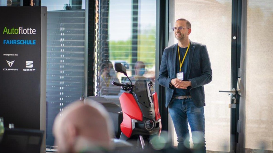 von 29: Christian Voß, Leiter Flotten bei Seat und Cupra (links), und Michael Blumenstein moderierten das Intro bequem sitzend auf den neuen Seat Mó Elektroflitzern.