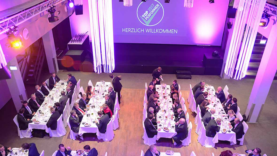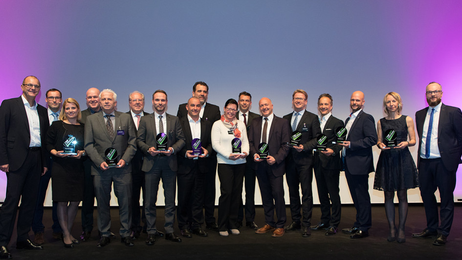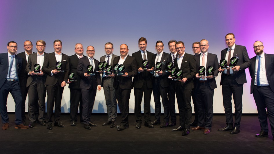 von 40: V.l.n.r.: Christian F. Merten (Chefredakteur Autoflotte), Dieter Mielke, Verkaufsleiter Region Rhein-Main der Marke Volkswagen Pkw, und Rocco Swantusch (Autoflotte) - "Autoflotte TopPerformer 2017" in der Kategorie "Kompakt-SUVs" (für Tiguan)