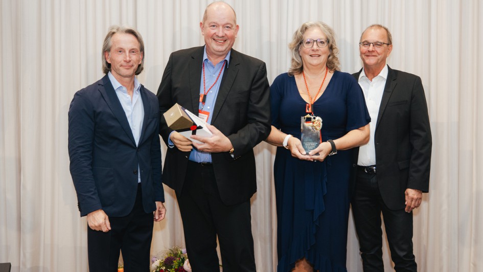 von 12: Sponsoren-Sieger sind Pia und Wolfgang Börsch von Loco-Soft. Ralph M. Meunzel (re.) und Thomas Hanswillemenke (li.) übergaben den Preis.