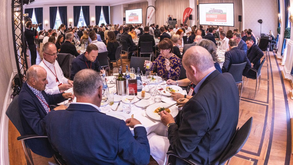 von 12: Thomas Hanswillemenke, Vorstand Mobility, Santander Deutschland (li.) und AUTOHAUS-Chefredakteur Ralph M. Meunzel eröffneten die "Nacht der Sieger" auf der 17. AUTOHAUS Santander Classic-Rallye.