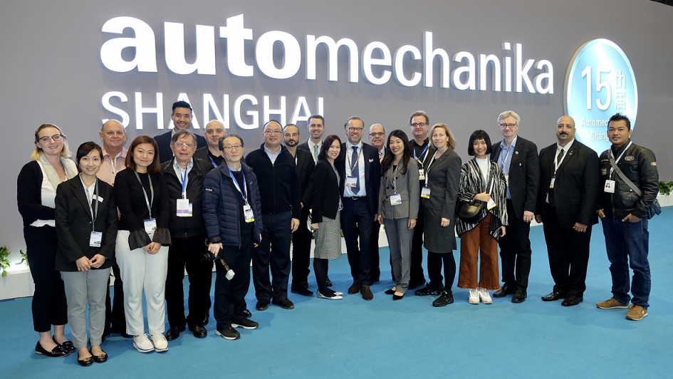 von 17: Journalisten aus fünf Kontinenten überzeugten sich von der erfolgreichen 15. Automechanika Shanghai. Unter anderem mit Fiona Chiew, Deputy General Manager, Messe Frankfurt (HK) Ltd. (7.v.r.), und Olaf Musshoff, Direktor Automechanika Messe Frankfurt (9.v.r.).