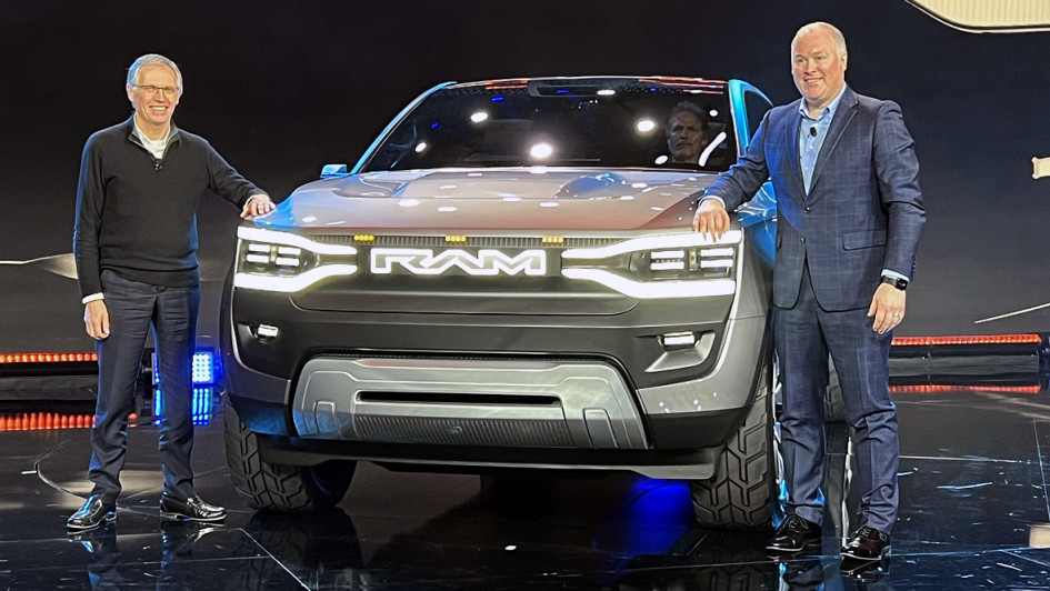 von 24: Der RAM 1500 Revolution BEV Concept Car gibt einen Ausblick auf das Serienmodell 1500 BEV, das 2024 debütieren und dem bereits erhältlichen Ford F-150 Lightning Konkurrenz machen soll.