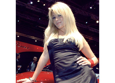 von 24: Ob Premiummarke oder Volumenhersteller: Auf Automessen werden die Ausstellungsstücke stets durch fesch gekleidete Hostessen ins rechte Licht gerückt...