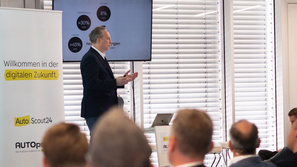 Burkhard Weller (Wellergruppe), Andreas Peter (Autohaus Peter Gruppe), Ralph M. Meunzel (AUTOHAUS), Thomas Giepen (Glinicke Gruppe), Jesper Ratza (Autoproff) und Michael Luhnen (Autoscout24) diskutierten unter anderem über das B2B-Geschäft, die Digitalisierung, die Elektromobilität und die Zukunft des Automobilhandels (v.l.n.r.).