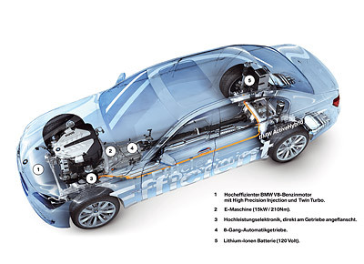 von 9: Vorerst will BMW die Hybridtechnik nur in Kombination mit großvolumigen Antrieben im Oberklasse-Segment zum Einsatz kommen, da grundsätzlich das Einsparpotenzial mit der Leistung des Verbrennungsmotors steigt.
