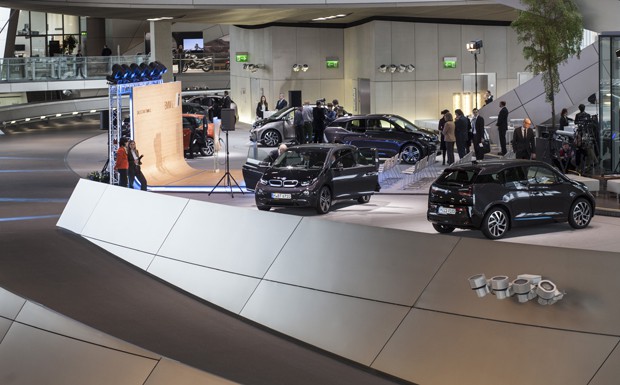von 3: Die ersten Kunden freuen sich über den Stromer: (v.l.n.r) Roland Krüger, Leiter Vertrieb Deutschland der BMW Group, Thomas Aich aus Ettlingen, Gerhard Eble, Geschäftsführer Innovative Hausverwaltungen Eble, Gabriela Eble aus Ratingen, Roman Dudenhausen, Gründer und Vorstand con/energy ag, aus Essen, Christine Haderthauer, Leiterin der Bayerischen Staatskanzlei, Staatsministerin für Bundesangelegenheiten und Sonderaufgaben, Oliver Bäte, Vorstandsmitglied der Allianz SE, Ingo Holz, Geschäftsführer BEOS AG, Fee-Holz-Kemmler aus Berlin und Ian Robertson, Mitglied des Vorstands der BMW AG, Vertrieb und Marketing BMW