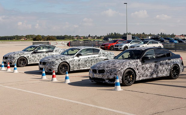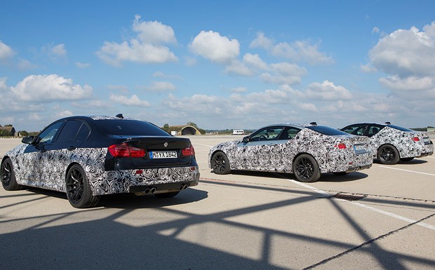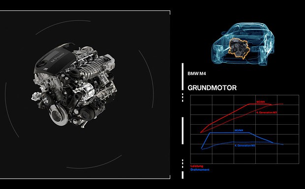 von 7: Bei der fünften Generation des BMW M3 und der nunmehr auf M4 getauften Coupé-Version (vorne) bringt es die völlig neu entwickelte Maschine auf 316 kW / 430 PS.