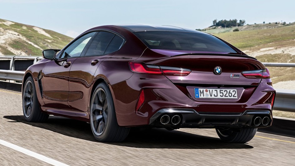 von 15: Optisch orientiert sich das Gran Coupé stark an den Zweitürern, übernimmt das Carbon-Dach, die aggressivere Frontschürze, die aufgeblasenen Backen und das breite Heck – das beim Gran Coupé noch etwas ausladender ist als beim normalen M8 – sowie die vierflutige Auspuff-Anlage.