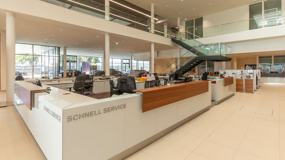 von 12: Das Serviceberater-Team steht nicht nur an den mehr als sechs direkt befahrbaren Annahmeplätzen, sondern auch mit einem Schnell-Service-Team bereit - von Montag bis Samstag.