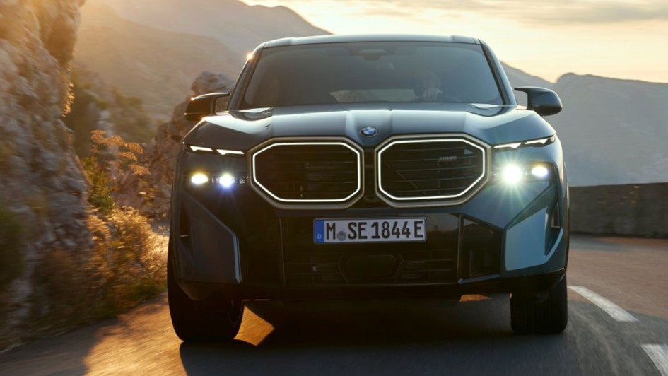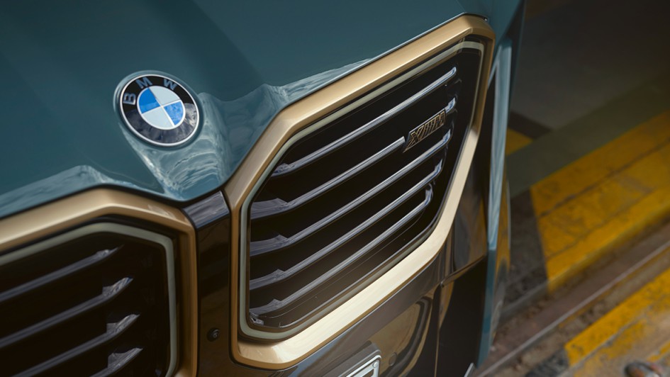 von 12: Eine gigantisch große Niere mit goldfarbener Einfassung und einer umlaufenden Konturbeleuchtung sowie großen Lufteinlässen kennzeichnet die Front.