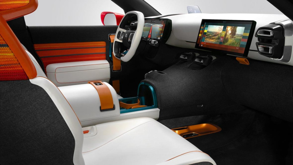 von 10: Innen ist die Studie auf Komfort ausgelegt. Hinter den gegenläufigen Türen ohne B-Säule nehmen die vier Passagiere auf breiten, weißen Ledersitzen Platz