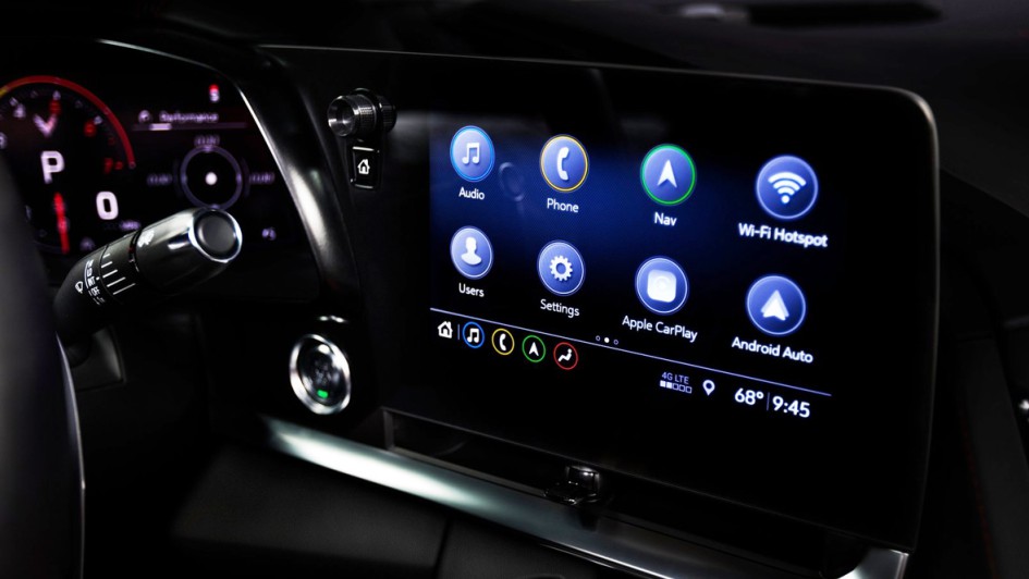 von 17: Im Cockpit der Corvette C8 haben analoge Instrumente ausgedient. Das Kombiinstrument, ein 12-Zoll-Display, passt seine Anzeigengrafik dem gewählten Fahrmodi an.