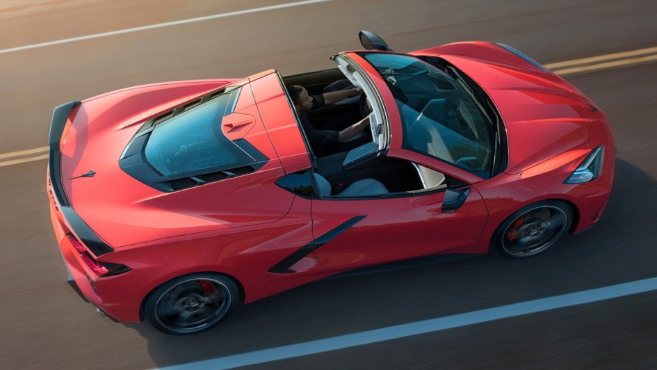 von 17: Vorne steht die Corvette C8 Stingray auf 19-, hinten auf 20-Zoll-Rädern. Wie ihre Vorgänger bietet sie die Möglichkeit, das einteilige Dach herauszunehmen.