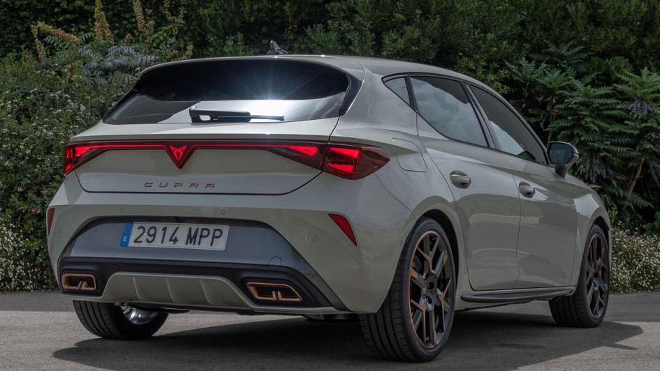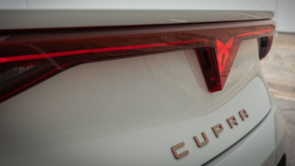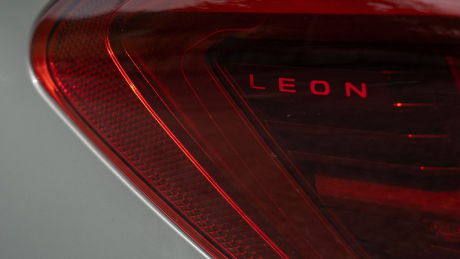 von 11: ... am Heck tat sich dafür einiges. Der Cupra Leon strahlt weiterhin mit dem durchgängigen Lichtband und hat nun ein beleuchtetes Logo hinzubekommen.