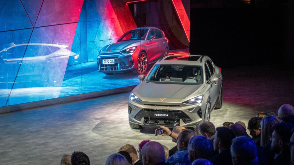 von 13: Der Cupra Formentor erhält ebenfalls die Shark-Nose. Die Tagfahr-LED sind nun dreigeteilt und im Dreiecksmuster. Matrixlicht gibt es ebenfalls beim Cupra Leon und Cupra Formentor.