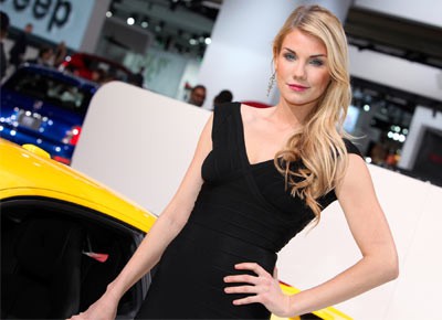 von 15: Detroit lockt als erste Messe des Jahres wieder mit Drehmoment und Dekolleté. Attraktives Standpersonal und geschmackvoll designte Autos sind die Hingucker in der ehemaligen Autohauptstadt der Welt. (Foto: UnitedPictures)