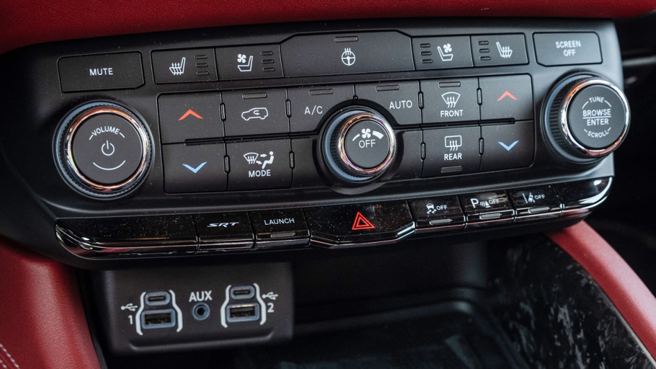 von 14: Antiquiert ist mittlerweile das Infotainmentsystem, wenngleich der Funktionsumfang groß ist. Im Kombiinstrument kann zudem die Spielerei 0-100, Top-Speed, Bremsweg und anderes unnützes Wissen eruiert werden. Klar ist: Schneller als der Dodge Durango SRT Hellcat ist kaum etwas auf der Straße.
