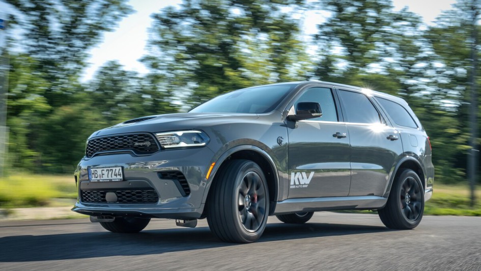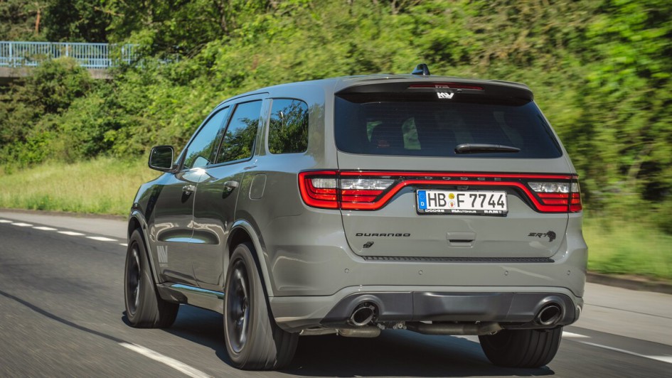 von 14: Ein seltener Anblick – vor allem in Deutschland. Mit dem 93-Liter-Benzintank lassen sich an ruhigen Tagen knapp 800 Kilometer bewältigen. An stürmischen Tagen ist nach 400 Sense. 16,1 Liter lautet der WLTP-Wert, der locker zu unterbieten. Aber das wird niemanden interessieren. Witzbolde können sich direkt eine LPG-Anlage installieren lassen, dann kommen nochmals 85 Liter Flüssiggas hinzu. Der Preis für den Dodge Durango SRT Hellcat: 136.000 Euro (brutto). Zu haben bei einem der 50 Distributoren in Deutschland. Das sind damit mehr Händler als bei vielen "etablierten" Autoherstellern.