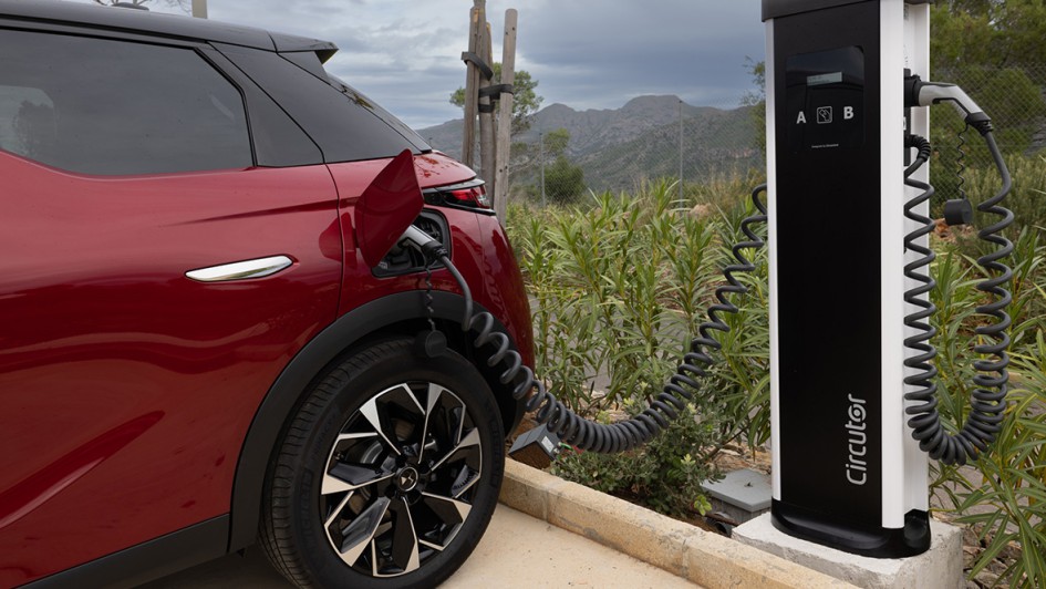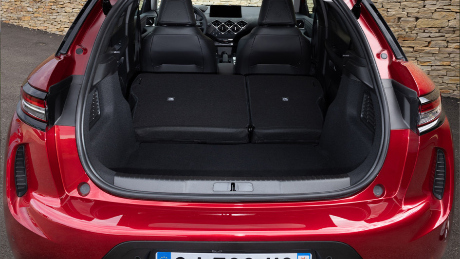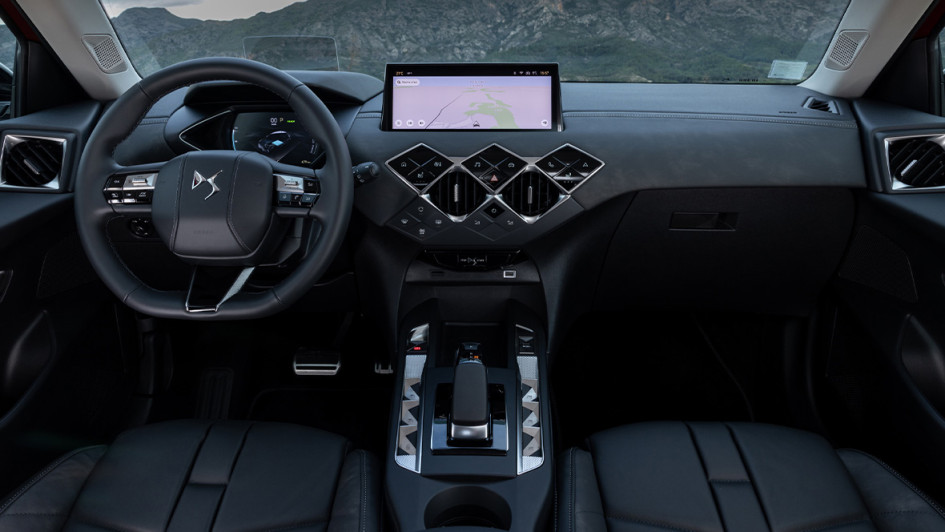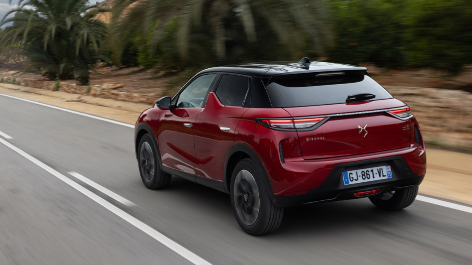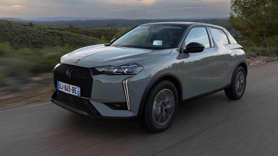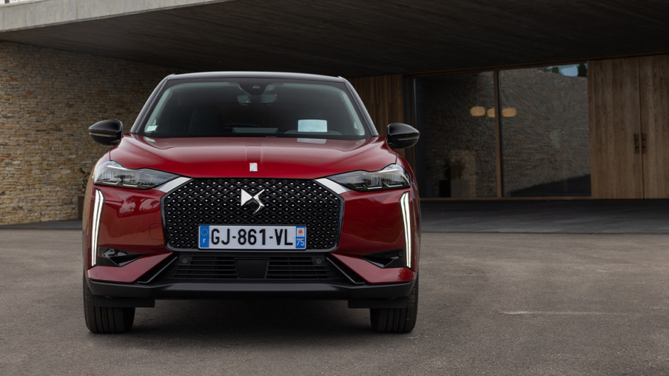 von 9: Optionale LED-Matrix-Scheinwerfer, ein neues Tagfahrlicht mit zwei LED-Linien und ein breiterer Kühlergrill sorgen für einen frischeren Auftritt des DS 3 E-Tense.