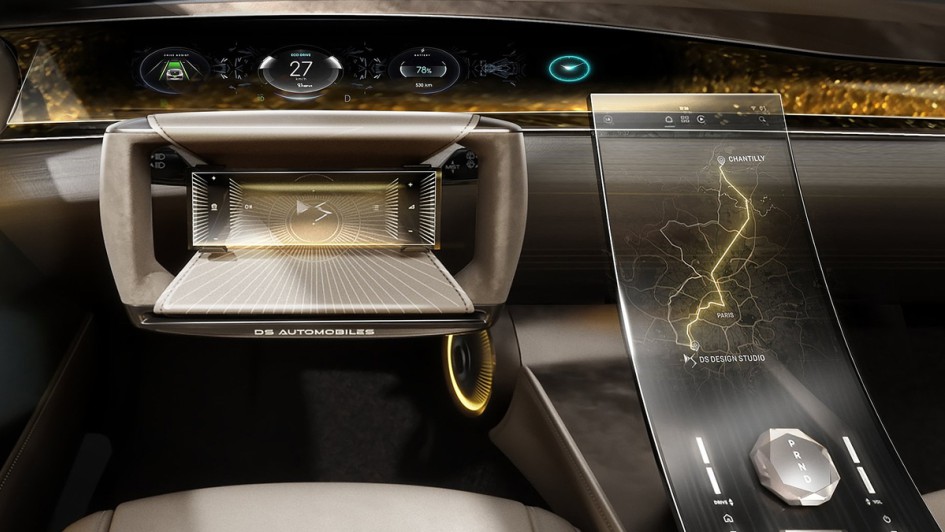 von 12: Getreu dem avantgardistischen Geist des SM erfolgt die Anzeige per Projektion. Das Lenkrad ist in Steer-by-Wire-Technologie ausgeführt – die Verbindung zu den Vorderrädern ist nicht mechanisch, sondern rein elektrisch.