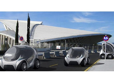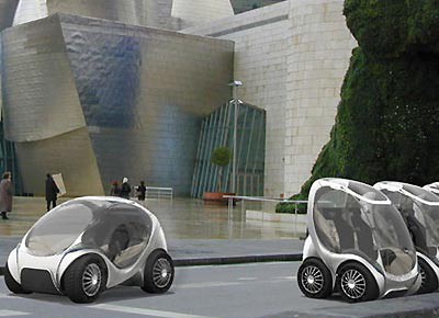 von 6: Zwei Insassen finden im Hiriko Citycar Platz.