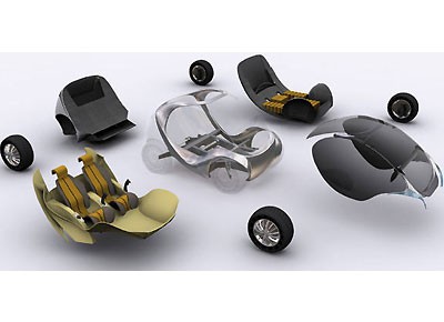 von 6: Das in Brüssel präsentierte Elektroauto Hiriko Citycar soll auch den kleinsten Raum nutzen: Die Fahrgastzelle schiebt sich auf einer Schiene auf 1,50 Meter zusammen.