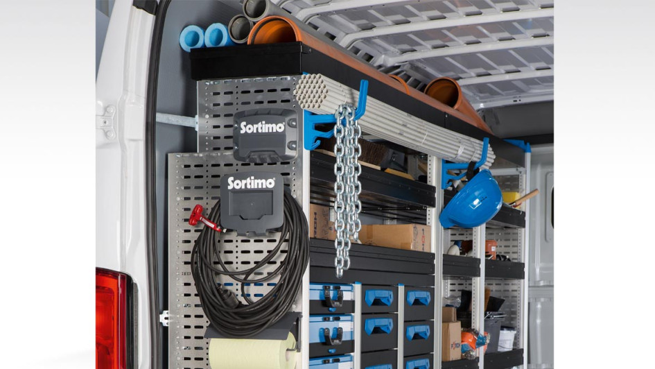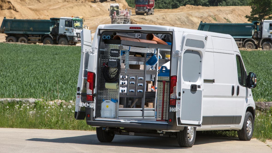 von 4: Fiat Professional hat gemeinsam mit Sortimo die Einrichtung des Fiat Ducato Montagemobils für den Einsatz von Service- und Kundendienstarbeiten auf die Fahrzeugeinrichtung Sortimo HD umgestellt.