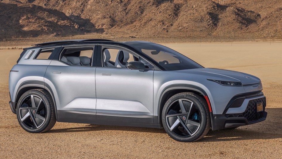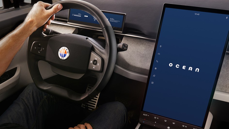 von 8: Auf der LA Auto Show hatte Fisker im November 2021 die US-Serienversion des Ocean vorgestellt. Vorne wie am Heck zeichnet sich das E-SUV durch besonders schmale Leuchteinheiten aus.