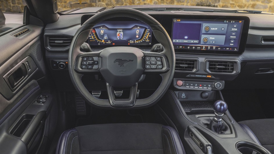 von 8: Der in der Heimat seit Mitte 2023 verfügbarer Mustang der 7. Generation basiert auf der gleichen Plattform wie sein Vorgänger, kommt aber mit komplett neu gestalteter Karosserie und neuem Innenraum-Design daher.