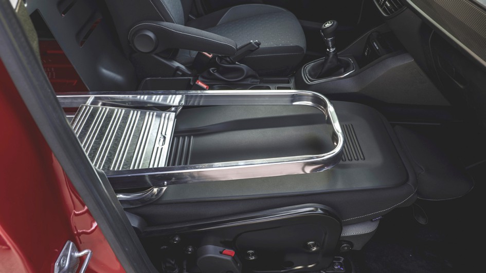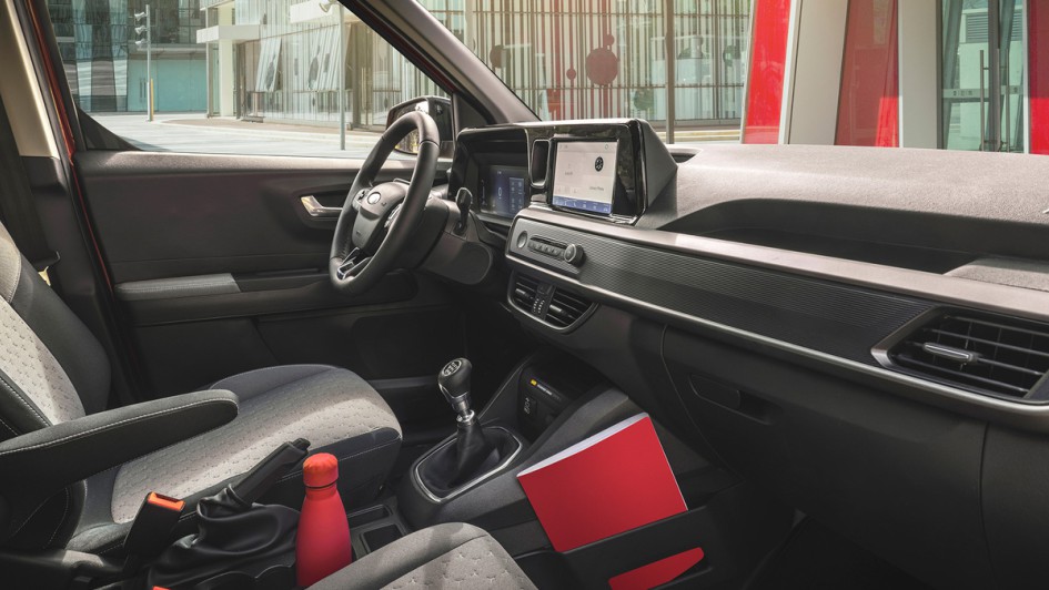 von 8: Die maximal zulässige Zuladung steigt auf bis zu 845 Kilogramm. In Verbindung mit einer neuen, demnächst optional erhältlichen Durchladeöffnung in der Rückwand nimmt der kleine Transporter sogar 2,60 Meter lange Rohre oder Bretter an Bord auf.