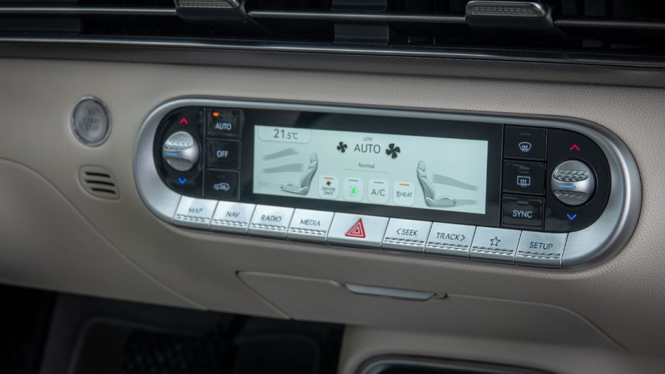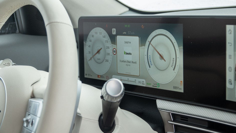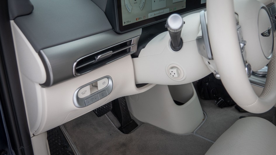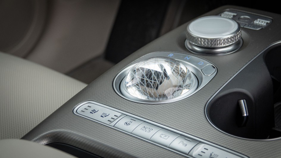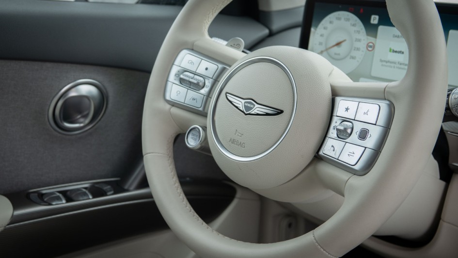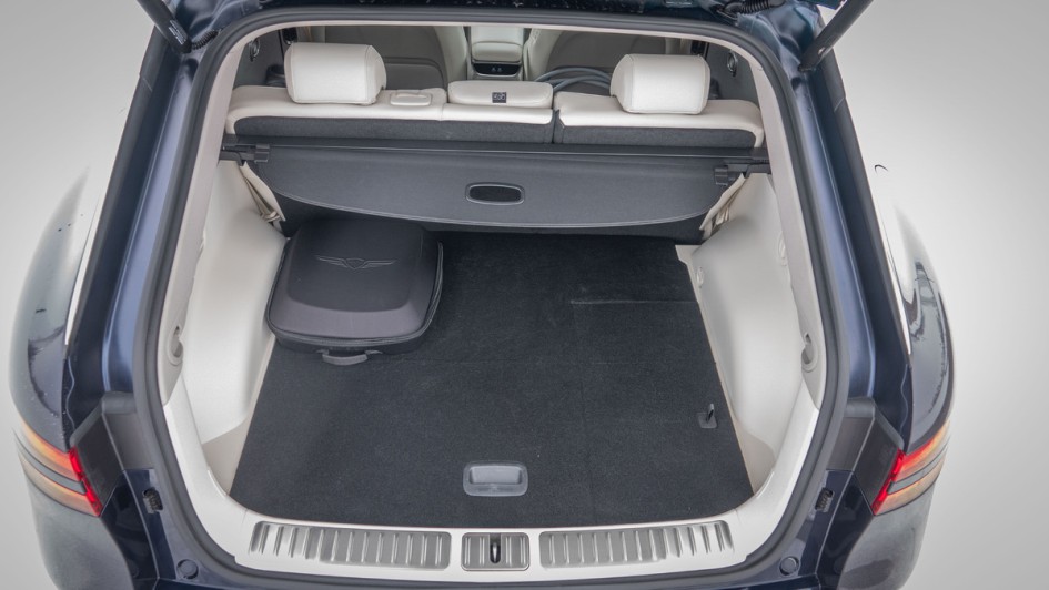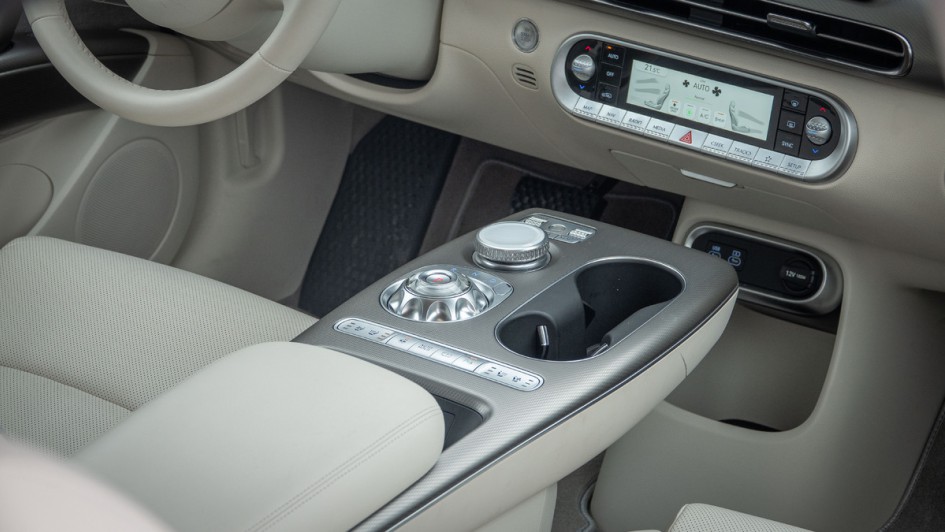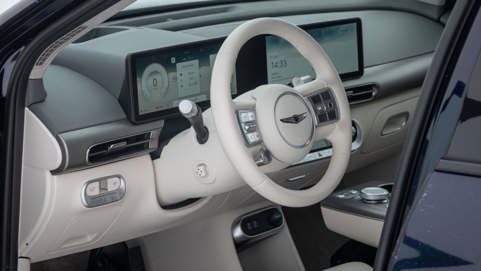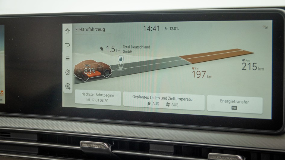 von 23: Mit einer maximalen Ladeleistung von 3,7 kW kann der Genesis GV60 Strom an externe Verbraucher abgeben. Das Vehicle-to-Load-Paket kostet jedoch 1.40 Euro (brutto). Unverständlich hingegen, dass nach wie vor kein kabelloses Smartphone-Projizieren möglich ist (Apple Carplay und Android Auto).