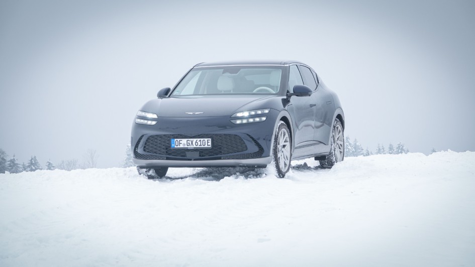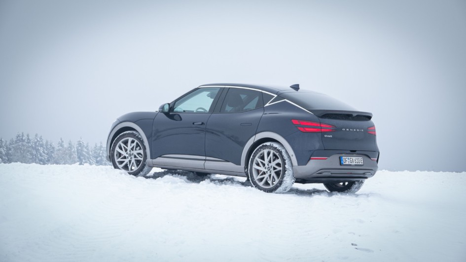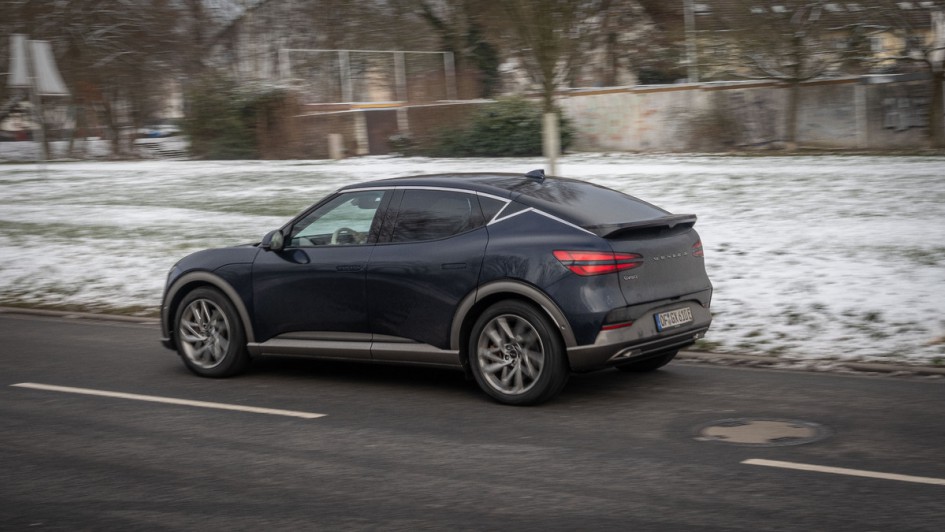 von 23: Den Genesis GV60 gibt es als Hecktriebler mit 229 PS und in zwei Leistungsklassen mit Doppelmotor. Entweder 318 oder 490 PS. Wir haben uns für die goldene Mitte entschieden.