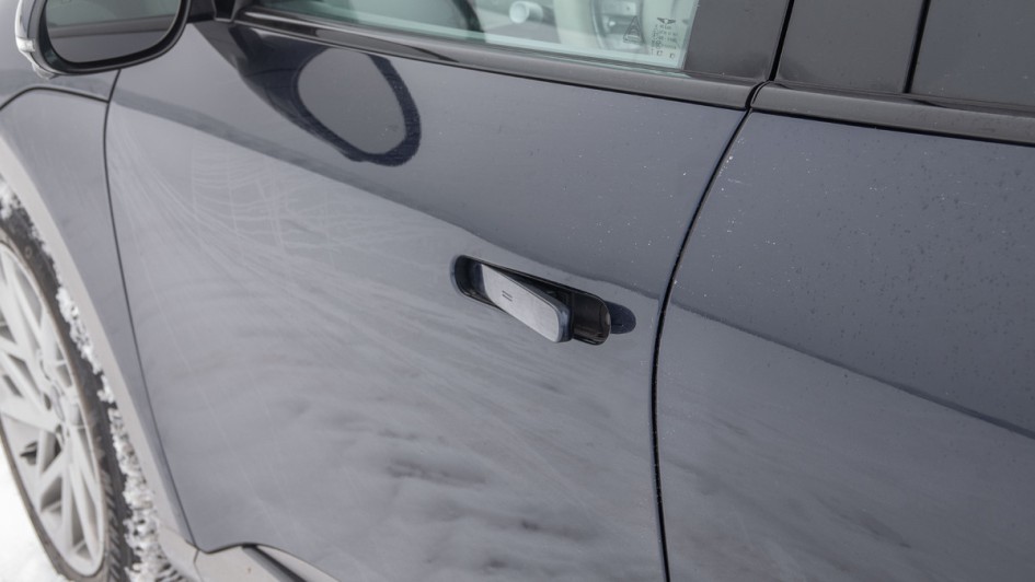 von 23: Wie beispielsweise bei den Schwestermodellen Hyundai Ioniq 5 und Kia EV6 sind auch beim Genesis GV60 die Türgriffe vor allem eins: unpraktisch. Immerhin springen sie hier beim Annähern mit Schlüssel in der Tasche stets elektrisch raus, sodass sich die Fummelei wie beim Ioniq 5-Basismodell erübrigt. Festfrieren ist jedoch auch hier möglich.