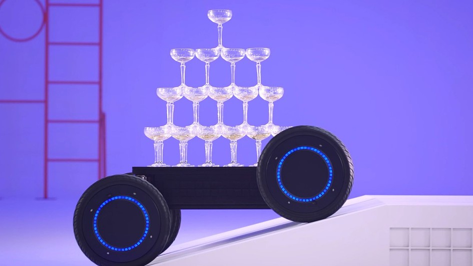 von 7: Da die Räder in alle Richtungen bewegt werden können und auch in der Höhe variabel sind, kennt das Gefährt keine Hindernisse wie Treppen oder Bordsteine.