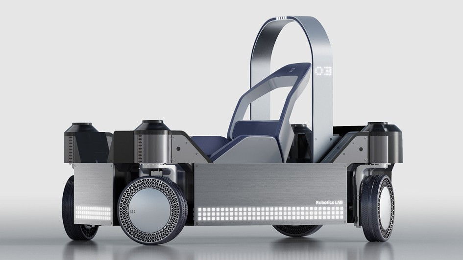 von 7: Der rechteckige "MobED" steht auf vier einzeln aufgehängten 12-Zoll-Rädern, mit denen eine stabile Bewegung auch auf geneigten und unebenen Straßen ermöglicht.