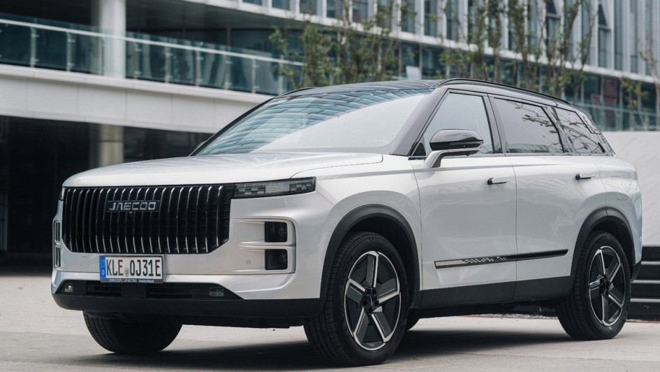 von 12: Der Jaecoo 7 SHS setzt auf ein kantiges, klar gezeichnetes Exterieur mit breiter Front, markanter Lichtsignatur und einer geradlinigen Seitenpartie.