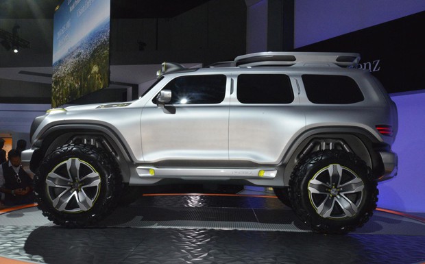 Beim Ener-G-Force lässt Mercedes alle Design-Hemmungen fahren: Das bullig monströse Fahrzeug erinnert an die brachialen Auto-Gebilde der 2010 eingestellten GM-Tochtermarke Hummer.