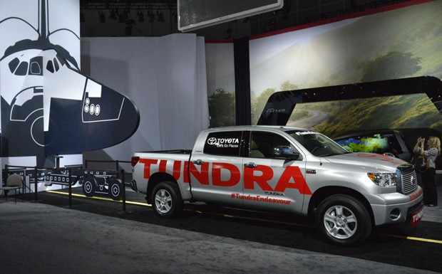 Riesen-Pick-ups wie den Tundra bietet Toyota in Deutschland gar nicht erst an. Auf dem amerikanischen Markt verkauft sich der große Wagen gut. Der auf der L.A. Auto Show stehende Tundra hat seine Fähigkeit als kräftige Zugmaschine bewiesen: Am 12. Oktober 2012 zog der Wagen das ausgemusterte, 150 Tonnen schwere Space Shuttle "Endeavour" zu seinem endgültigen Stellplatz in einem Museum.