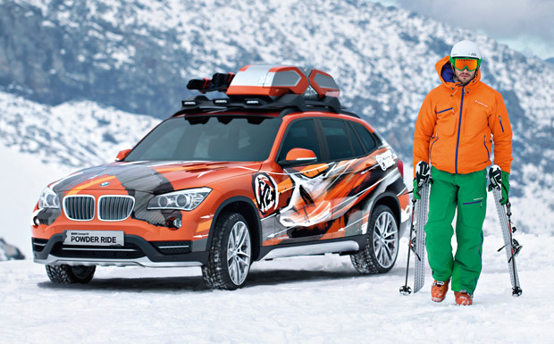 Der Dachaufbau der allradgetriebenen X1-Studie besteht aus gefrästem Aluminium: Zwei Transportboxen und ein Skiträger sind hier nebeneinander montiert. Innen sorgt eine Audioanlage von Harman-Kardon für Sound, außen fällt das Konzeptfahrzeug durch seine K2-spezifische Gestaltung auf.