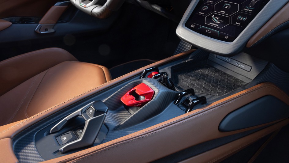 von 8: Über kleine Drehregler am Lenkrad lassen sich vier Fahrmodi, E-Programme sowie die Position der Karossiere und des Heckspoilers personalisieren.