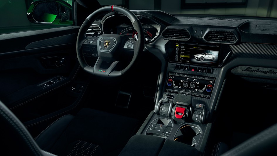 von 6: Im Innenraum bietet das Cockpit serienmäßig schwarzes Alcantara. Das Alcantara-/Lederlenkrad ist in Mattschwarz gehalten, ebenso wie die Aluminium-Innenverkleidung in eloxiertem Schwarz.
