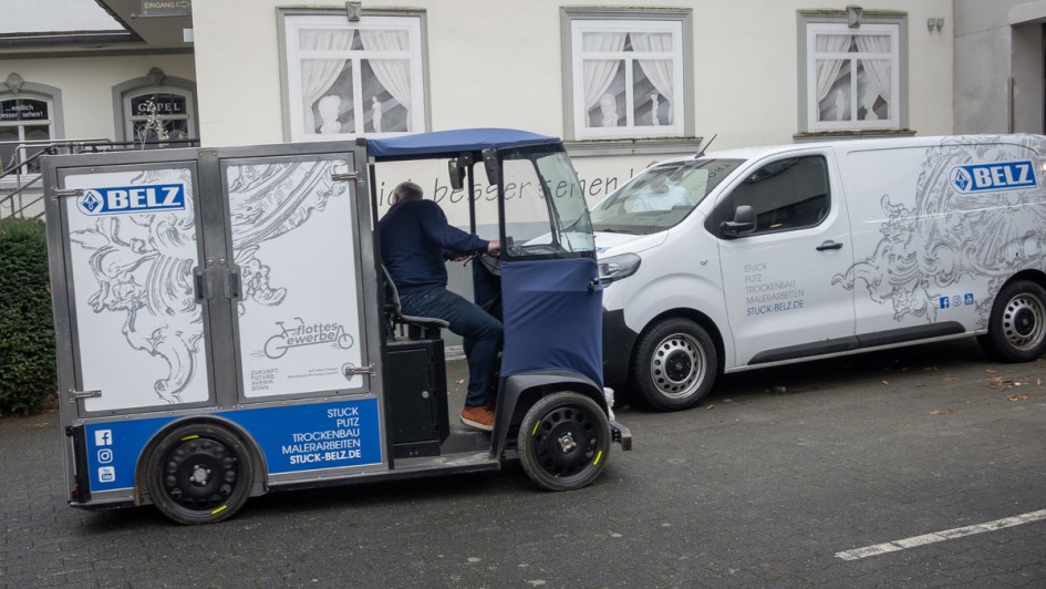 von 12: Michael Christmann ist nach mehr als einem halben Jahr Lastenrad-Nutzung überzeugt, dass diese Flottenergänzung für sein Unternehmen Sinn ergibt, und freut sich über die positive Werbung, die damit verbunden ist.