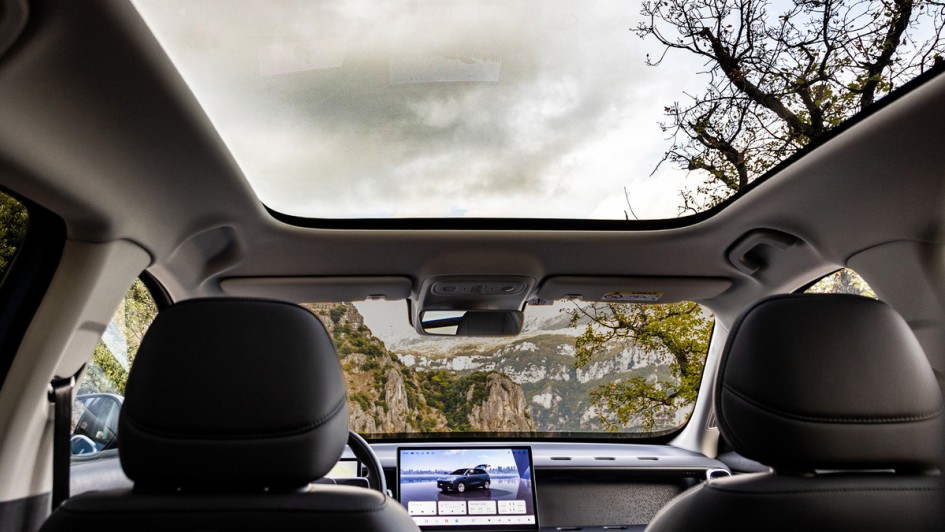 von 12: Der Innenraum ist klar und clean gestaltet, jede Aktion muss über das glasklare 14,6 Zoll große Touch-Display oder den Sprachassistenten abgerufen werden.