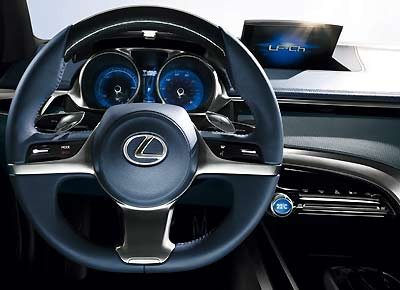 von 6: Die Armaturentafel ist asymmetrisch dem Fahrersitz zugewandt. Die Konzeptstudie ist als erstes Lexus Hybridfahrzeug mit Schaltwippen am Lenkrad ausgestattet.