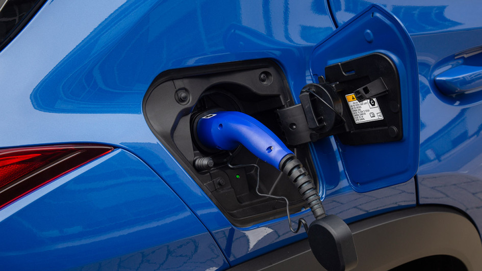 von 7: Das Fahrzeug besitzt zwei Ladeanschlüsse: Einen hinten rechts zum Wechselstrom-Laden (AC) und einen hinten links zum Gleichstrom-Laden (DC).