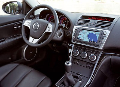von 10: Mazda bringt den 6er in vier Ausstattungsstufen, wobei Details wie Bi-Xenon-Scheinwerfer mit Kurvenlicht, Reifendruckkontrolle und Einparkhilfe erstmalig im Angebot sind.