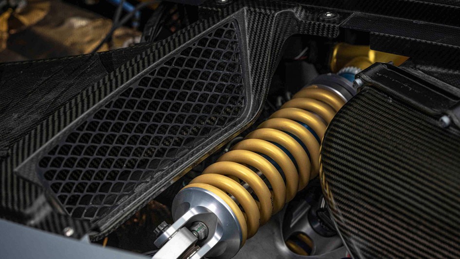 von 10: Dank Pushrod-Fahrwerk sind beim One Federn und Dämpfer innenliegend an der Karosseriestruktur befestigt und außerdem liegend positioniert.